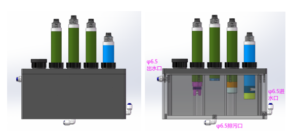 | 進水口 | 外徑φ6.5的2分凈水器PE管,流速500mL/min,壓力0.1-0.2MPa |